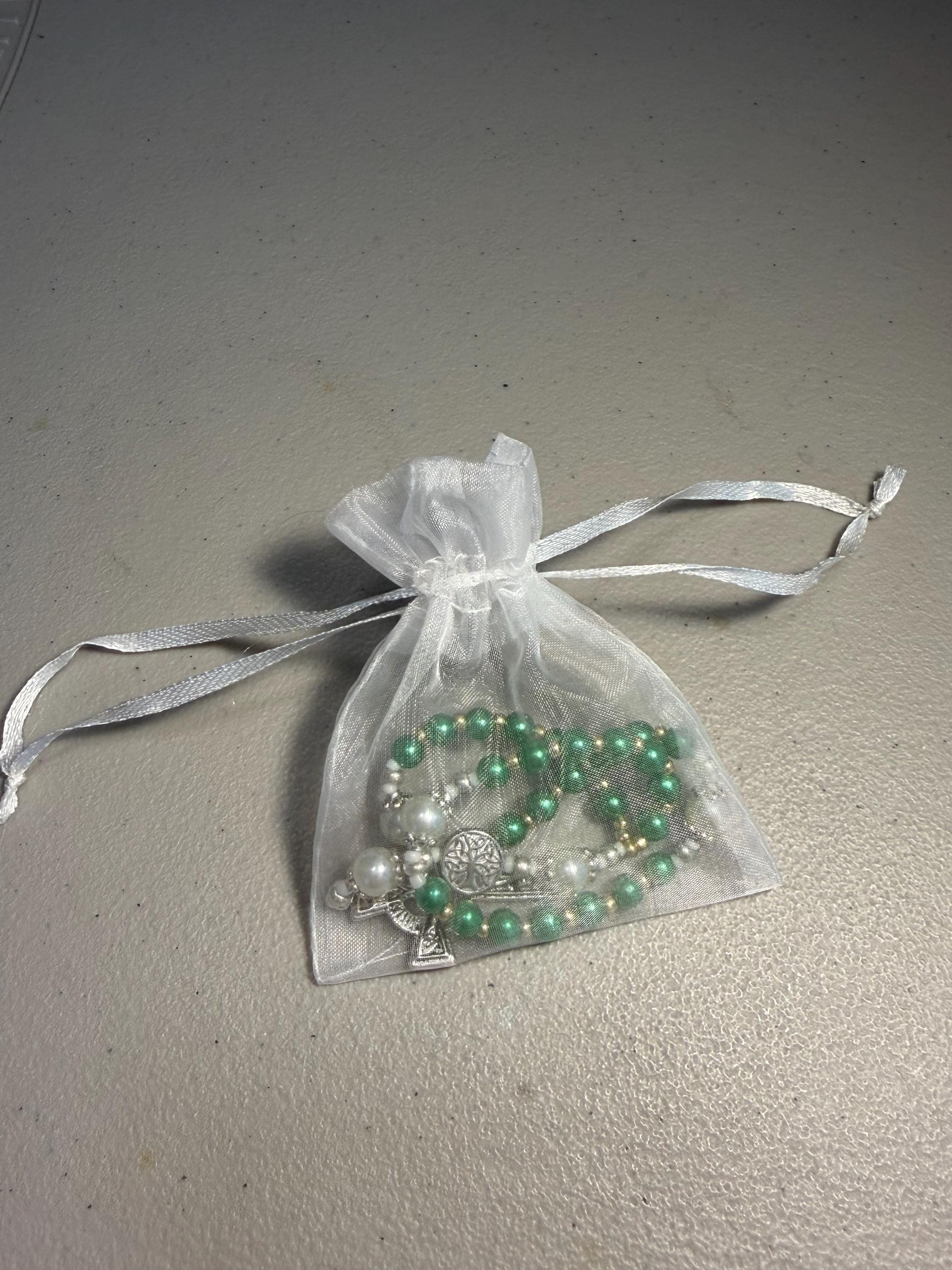The rich green color paired with gold and silver gives this rosary a timeless Celtic feel, making it a meaningful item for Anglican, Christian, and devotional use. It also makes a thoughtful gift for confirmations, baptisms, Christmas, Easter, ordinations, and spiritual milestones.